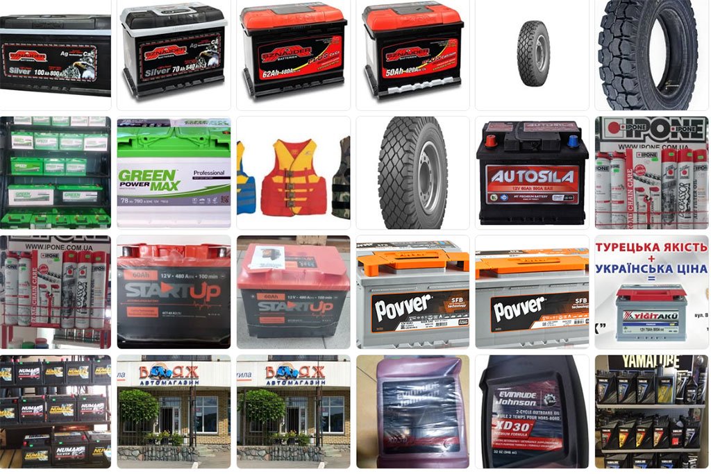 Та ще багато різних марок акумуляторів, олії та інших товарів.