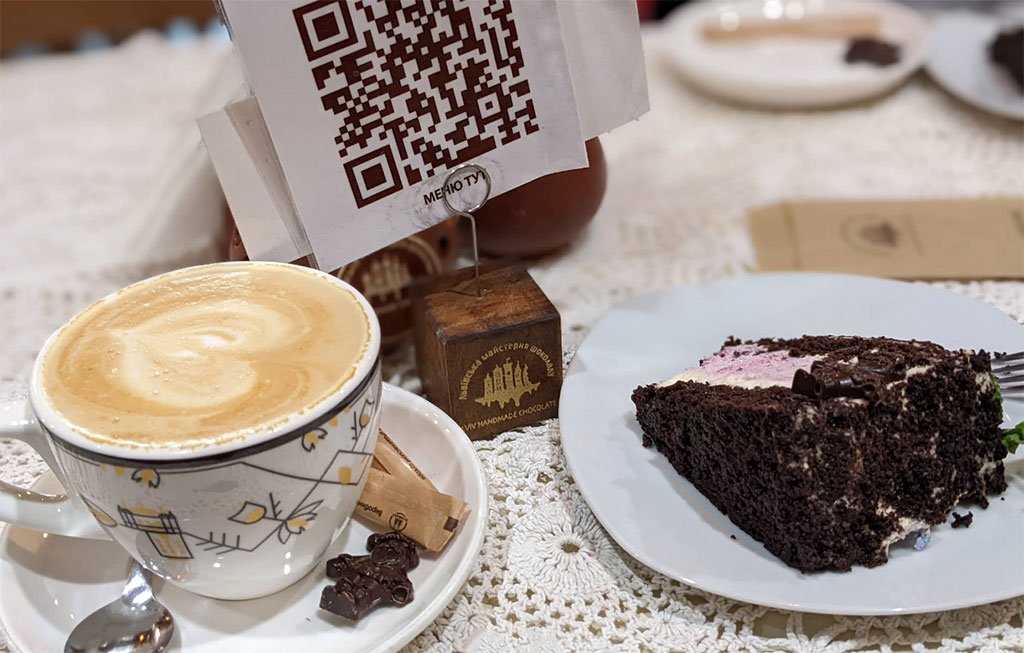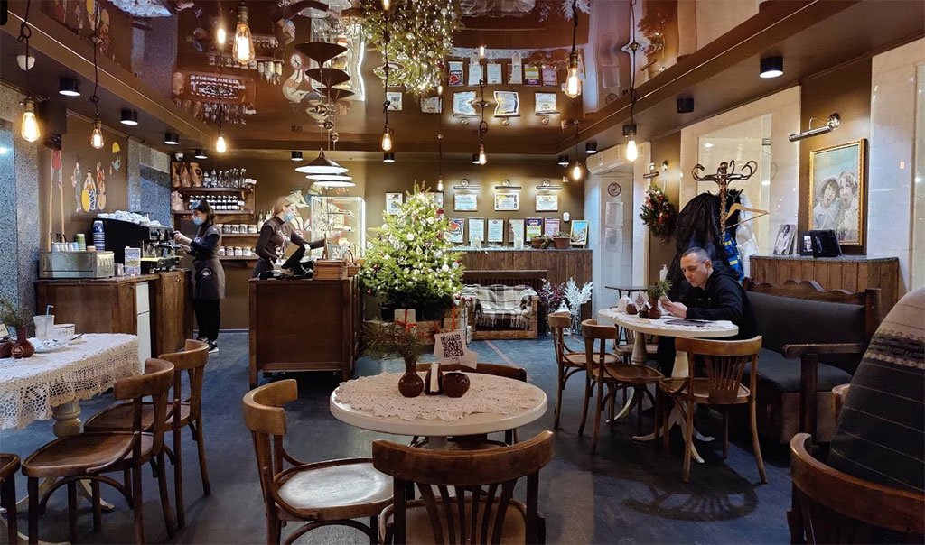 Затишку додають делікатні елементи інтер’єру, ажурні скатертини та живі квіти на столиках кафе, приємні аромати кави у поєднанні з джазовими композиціями – все з відтінком солодкого Львова.